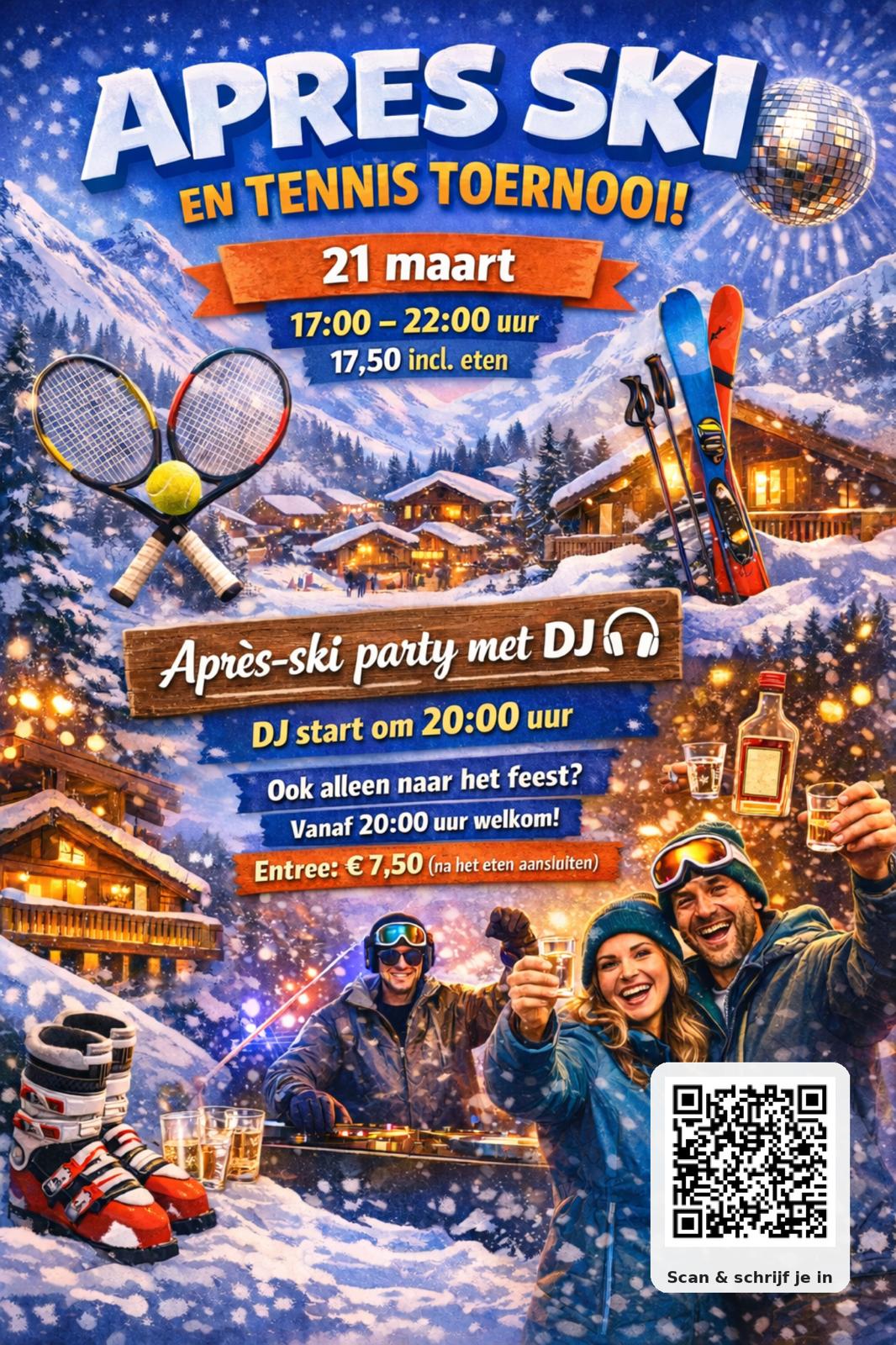 🎿🔥 Après-Ski Tennis & Padel Toernooi – Zaterdag 21 maart 🔥🎿